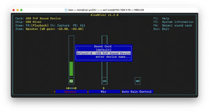 În consecință, în alsamixer va fi afișată doar interfața dorită, în acest caz un dongle USB: | |||