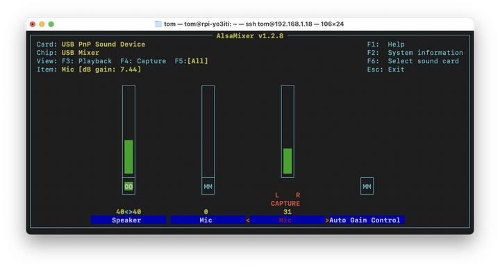 Auto gain trebuie dezactivat, altfel sunetul va fi distorsionat. Nivelul se stabilește din | Auto gain trebuie dezactivat, altfel sunetul va fi distorsionat. Nivelul se stabilește din ''CAPTURE''. | ||