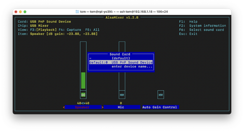 În consecință, în alsamixer va fi afișată doar interfața dorită, în acest caz un dongle USB: